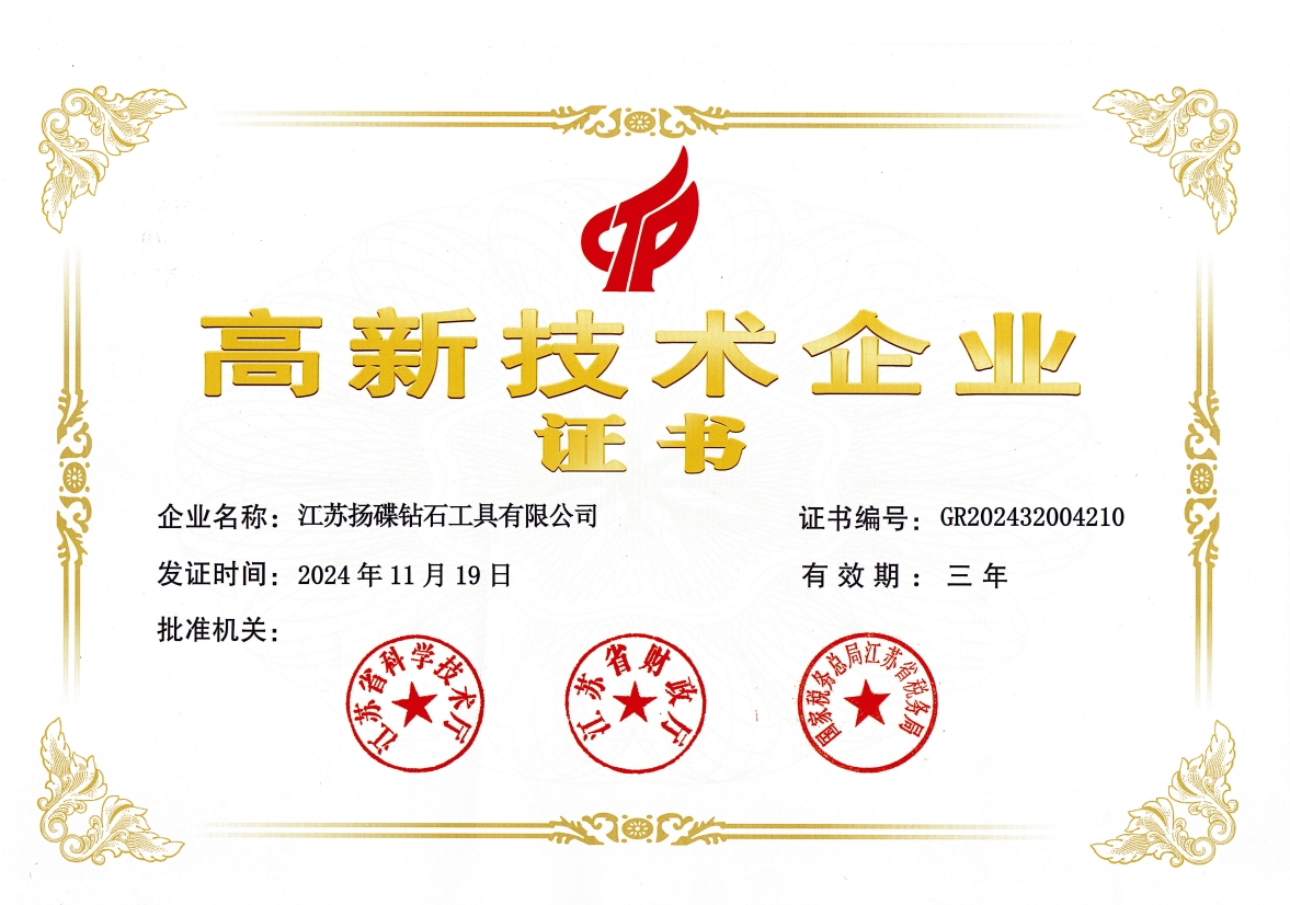 多年來(lái),企業(yè)通過(guò)ISO9001國(guó)際質(zhì)量體系認(rèn)證,被中國(guó)中輕產(chǎn)品質(zhì)保中心授予“全國(guó)金剛石制造行業(yè)質(zhì)量放心滿意單位”,獲得江蘇省高新技術(shù)企業(yè)稱號(hào),榮獲江蘇省小巨人稱號(hào),變速箱PCD復(fù)合鉆鉸刀獲省高新技術(shù)產(chǎn)品等等。